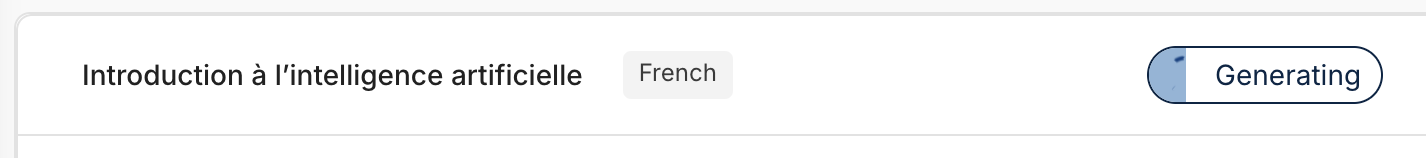 <figure><img src="https://2718234637-files.gitbook.io/~/files/v0/b/gitbook-x-prod.appspot.com/o/spaces%2FriXlnuemuParrCf7Uotu%2Fuploads%2FoGoIcXR3k6m0veG64NbX%2FScreenshot%202025-04-10%20at%2011.21.53.png?alt=media&#x26;token=e4f37140-7147-4ff2-a874-6b8be84e9bb8" alt="" width="563"><figcaption><p>Generating a translated course in French</p></figcaption></figure>