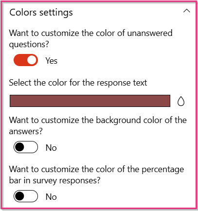 The background color of the unanswered questions. If the you click 'yes', you can choose the color for the response text.