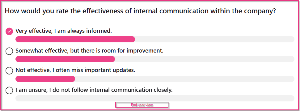 Multilingual support: questions and response options can be translated into various languages, which means that the web part will adapt to each user's browsing language. This feature allows you to engage all company locations with a single survey.